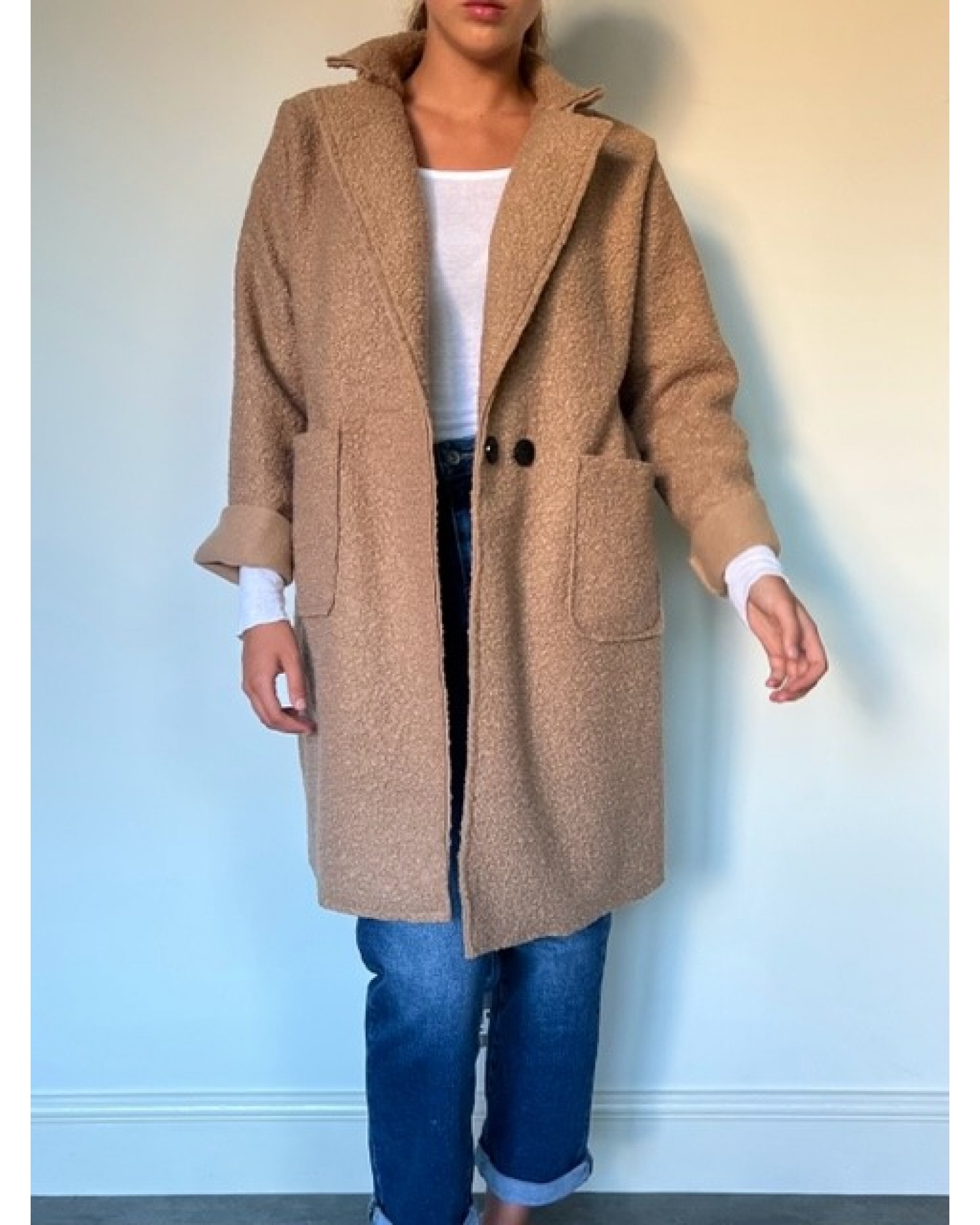Light weight raw edge unlined coat with the feel of a cardigan.